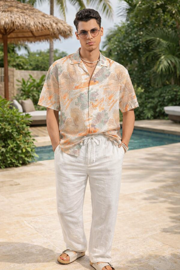 Bring a touch of Miami glamor to your wardrobe. The Cuban collar shirt (distinguished by its open, notch-like collar) is breathable, relaxed, and incredibly stylish. In 2026, bold geometric prints or deep, solid jewel tones on silk-like fabrics are dominating men’s fashion.